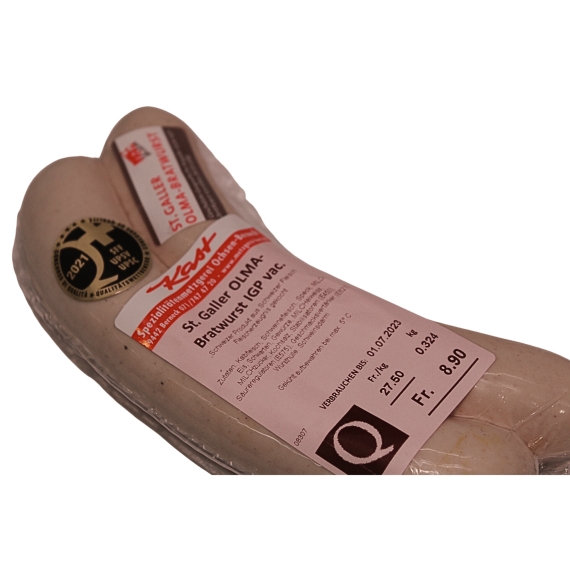 Zutaten: Kalbfleisch, Schweinefleisch, Speck, Milch, Eis, Schwarten, Gewürze, Milcheiweiss, Milchzucker, Kochsalz, Stabilisatoren (E450), Säureregulatoren (E575), Geschmacksverstärker (E621)