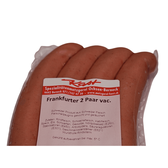 Zutaten: Rindfleisch, Schweinefleisch, Kalbfleisch, Speck, Eis, Schwarten, Gewürze, Nitritpökelsalz (E250), Stabilisatoren (E450), Antioxydans, Säureregulatoren (E301), Geschmacksverstärker (E621)