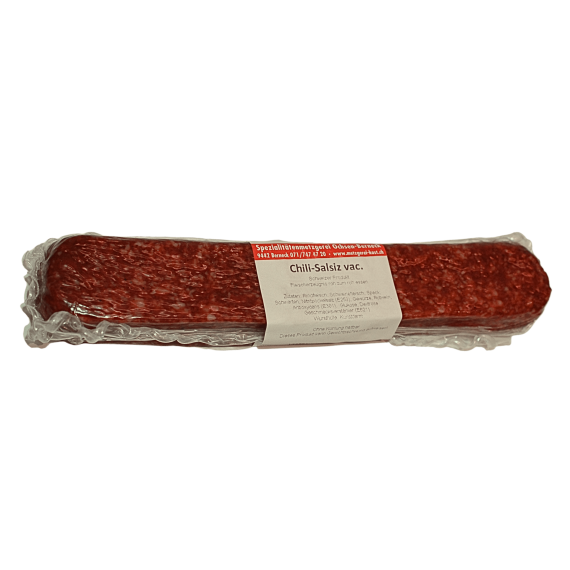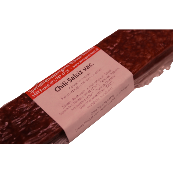 Zutaten: Rindfleisch, Schweinefleisch, Speck, Schwarten, Nitritpökelsalz (E250), Gewürze, Rotwein, Antioxydans (E301), Glukose, Dextrose, Geschmacksverstärker (E621)